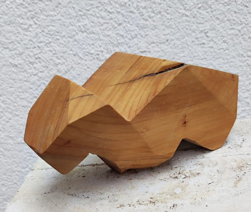 In Dresden habe ich 2023 auch mal mit Holz gearbeitet. Es ist ganz anders als mit Stein, hier muss ich auf die Maserung des Holzes eingehen und kann nicht in alle Richtungen arbeiten. Zuerst habe ich nur ein Modell aus Lehm geformt und erst dann die Bearbeitung begonnen.